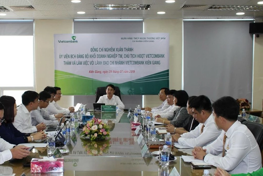 Ông Nghiêm Xuân Thành và đoàn công tác làm việc với lãnh đạo Vietcombank Kiên Giang và Vietcombank Phú Quốc tại trụ sở Vietcombank Kiên Giang.