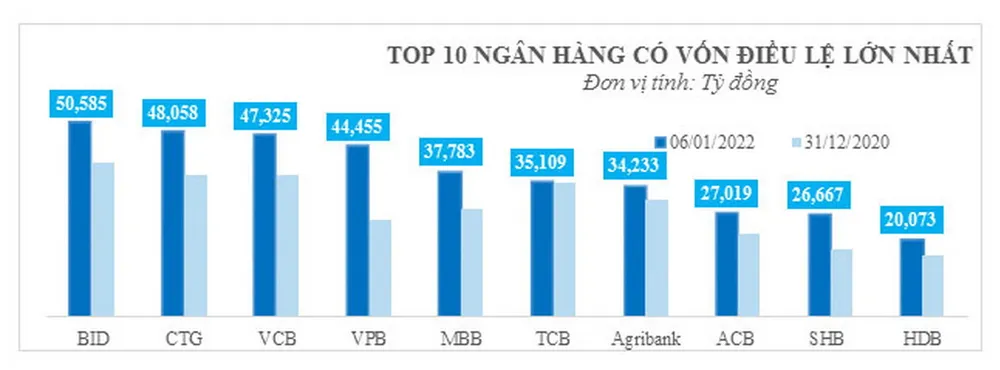 Top 2 ngân hàng có vốn điều lệ lớn nhất ngành