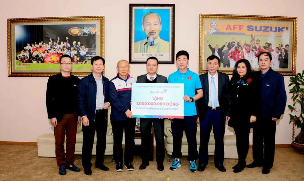 Tại buổi gặp mặt, ông Nguyễn Đình Vinh (Phó TGĐ) thay mặt VietinBank, đã gửi lời chúc mừng nồng nhiệt về thành tích đặc biệt xuất sắc của đội tuyển bóng đá nam U-23 Việt Nam tại Giải bóng đá U-23 châu Á vừa qua. “Thành tích đặc biệt xuất sắc của đội tuyển bóng đá nam U-23 Việt Nam tại giải đấu đã mang lại cho người hâm mộ cả nước những cảm xúc mãnh liệt và khơi dậy niềm tự hào dân tộc, viết nên trang sử mới cho bóng đá Việt Nam. Hòa chung niềm tự hào của cả nước, VietinBank quyết định trao tặng 1 tỷ đồng cho đội tuyển bóng đá nam U-23 Việt Nam”, ông Vinh nhấn mạnh.
