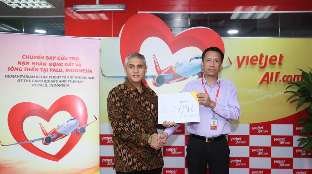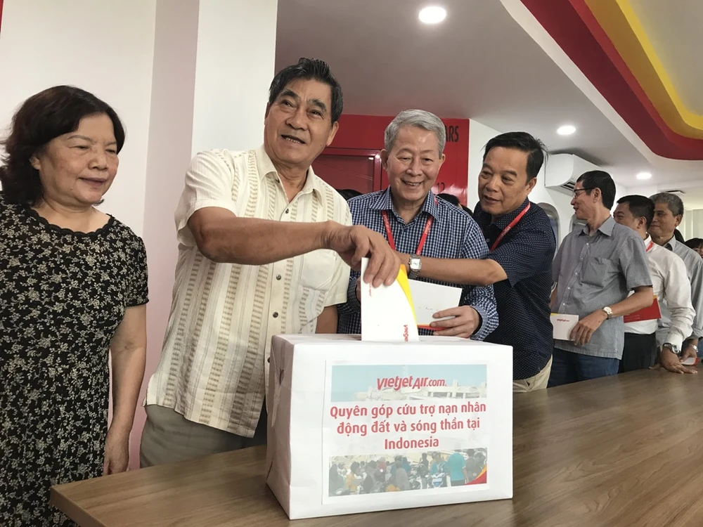 Chủ tịch HĐQT Nguyễn Thanh Hà, lãnh đạo và cán bộ, nhân viên Vietjet tổ chức quyên góp giúp đỡ các nạn nhân thảm họa kép động đất - sóng thần tại Indonesia.