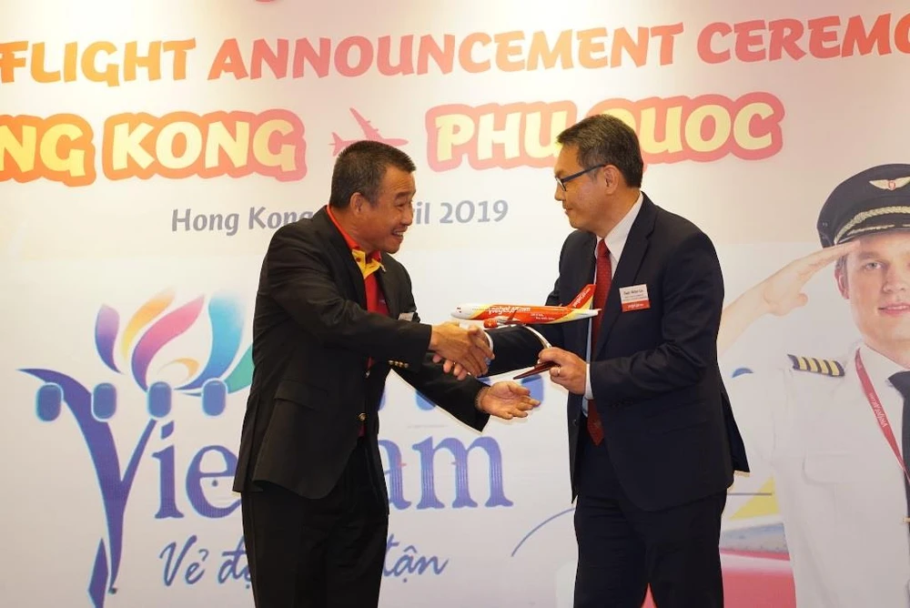 Ngày 9-4 tại Hồng Kông, VietJet đã khai trương thương mại đường bay Phú Quốc - Hồng Kông và công bố kế hoạch khai thác giữa Việt Nam và Hồng Kông.