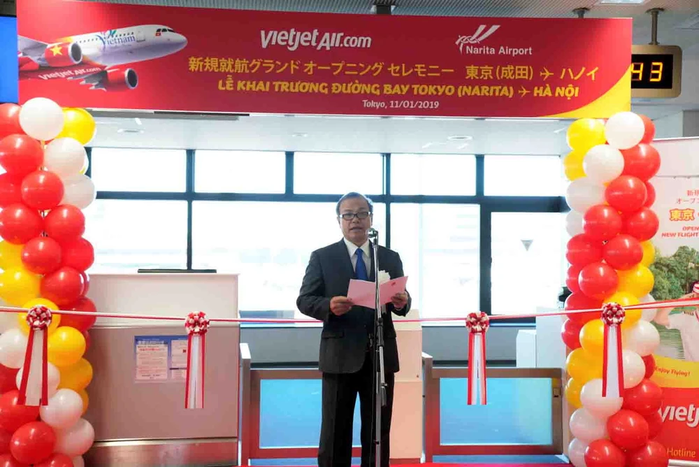 Đại sứ Việt Nam tại Nhật Bản, ông Vũ Hồng Nam phát biểu chào mừng chuyến bay khai trương đường bay thứ 3 của VietJet đến Nhật Bản, phục vụ nhu cầu đi lại tăng cao của người dân, thúc đẩy du lịch, giao thương và trao đổi văn hóa giữa hai nước.