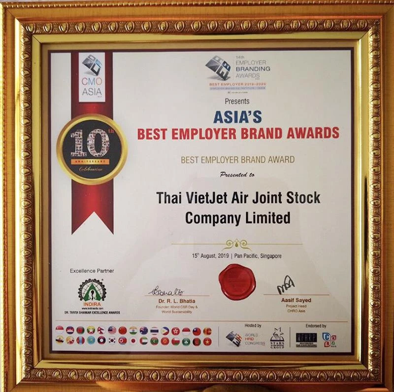 Đầu năm nay, Vietjet Thailand cũng đã nhận giải thương hiệu Nhà tuyển dụng tốt nhất toàn cầu năm 2019 tại Ấn Độ.