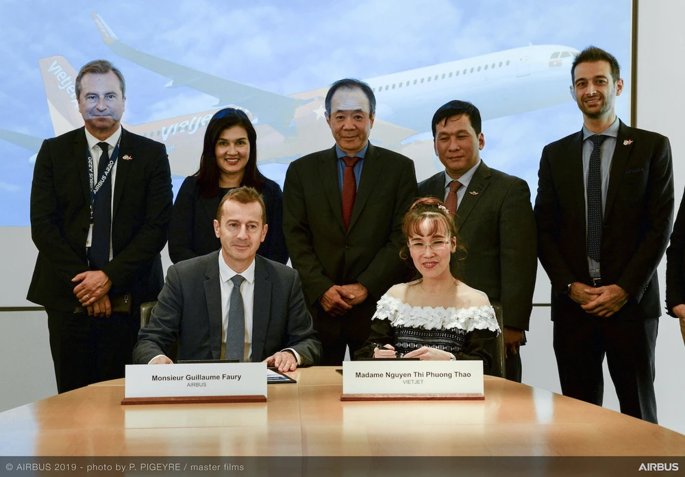 Tổng Giám đốc VietJet - bà Nguyễn Thị Phương Thảo và ông Guillaume Faury, Chủ tịch - Tổng giám đốc Tập đoàn Airbus đã cùng ký kết hợp đồng quan trọng này trong khuôn khổ chuyến thăm châu Âu của tổng giám đốc và đoàn lãnh đạo cấp cao của VietJet.