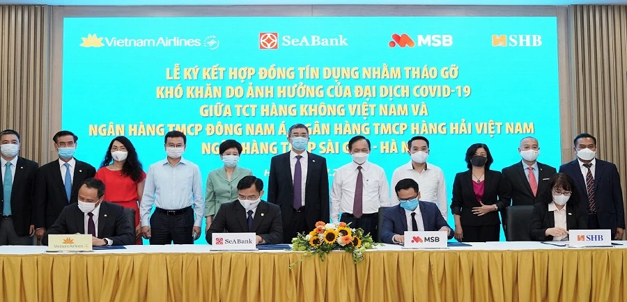 Hãng hàng không Vietnam Airlines cho biết sáng 7-7, hãng đã ký kết hợp đồng tín dụng với ba ngân hàng thương mại là Ngân Hàng TMCP Đông Nam Á (SeABank), Ngân hàng TMCP Hàng Hải Việt Nam (MSB) và Ngân hàng TMCP Sài Gòn - Hà Nội (SHB) với tổng số tiền vay 4.000 tỉ đồng.