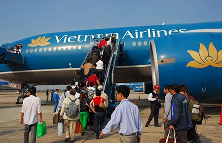 Máy bay Vietnam Airlines chuẩn bị cất cánh từ sân bay Tân Sơn Nhất. Ảnh: HTD