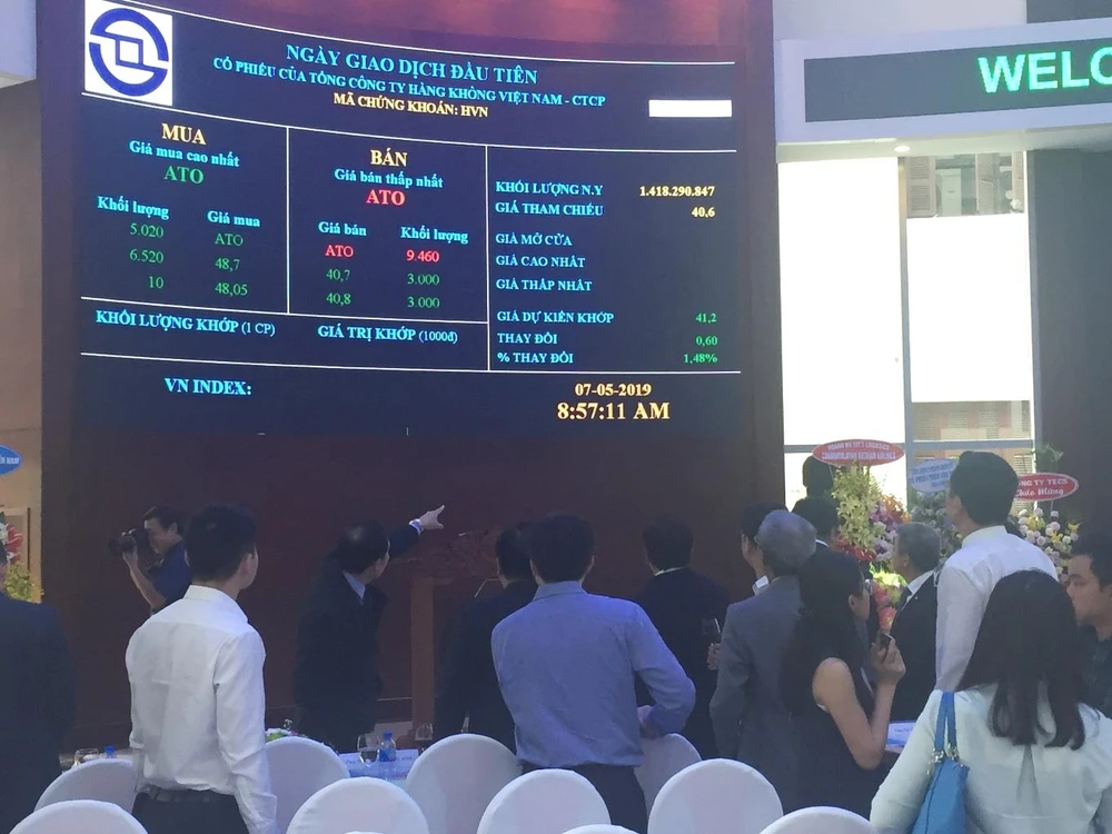 Theo đó, Vietnam Airlines niêm yết hơn 1,4 tỉ cổ phiếu với giá tham chiếu là 40.600 đồng, tính ra giá trị vốn hóa của Vietnam Airlines là hơn 57.000 tỉ đồng, tương đương 2,5 tỉ USD.