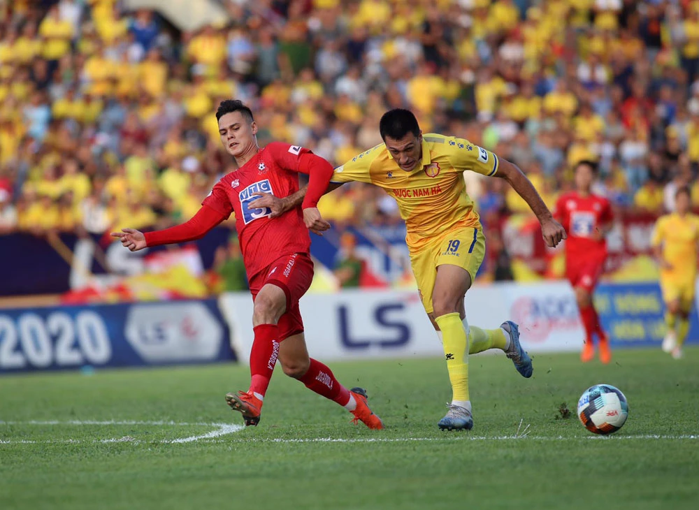 Trận đấu sớm vòng 6 V-League khác vào chiều 23-6, chủ nhà Nam Định thua đau khách Hải Phòng 0-2 để nằm yên dưới đáy bảng với chỉ 3 điểm.