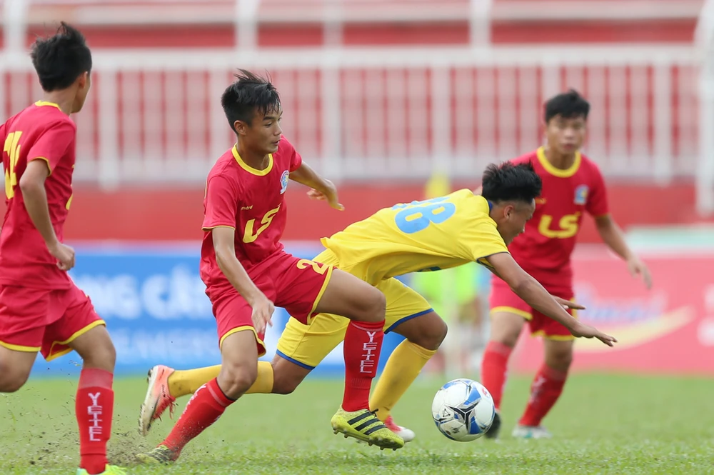 Viettel (áo đỏ) tỏ ra quá mạnh trước Sanna.KH
