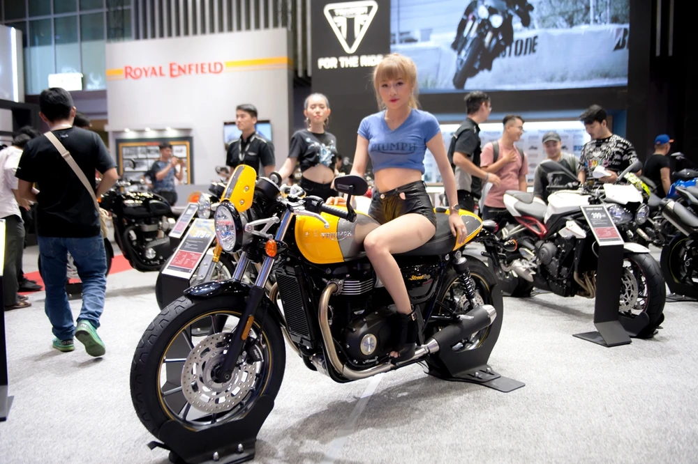 TRIUMPH: Triumph Motorcycles mang đến triển lãm năm nay các mẫu xe dành cho những tín đồ mê phong cách hoài cổ: mẫu xe Street Twin và các mẫu mã mới nhất của dòng Modern Classic Bonneville dòng xe The Roadster và Supersport luôn thu hút các biker yêu thích kiểu dáng hầm hố và tốc độ cao với các mẫu xe Speed Striple và Street Striple. Những tâm hồn có sở thích “xê dịch” có thể ngắm mẫu Tiger 800s, Tiger Explorers và Tiger Sport.
