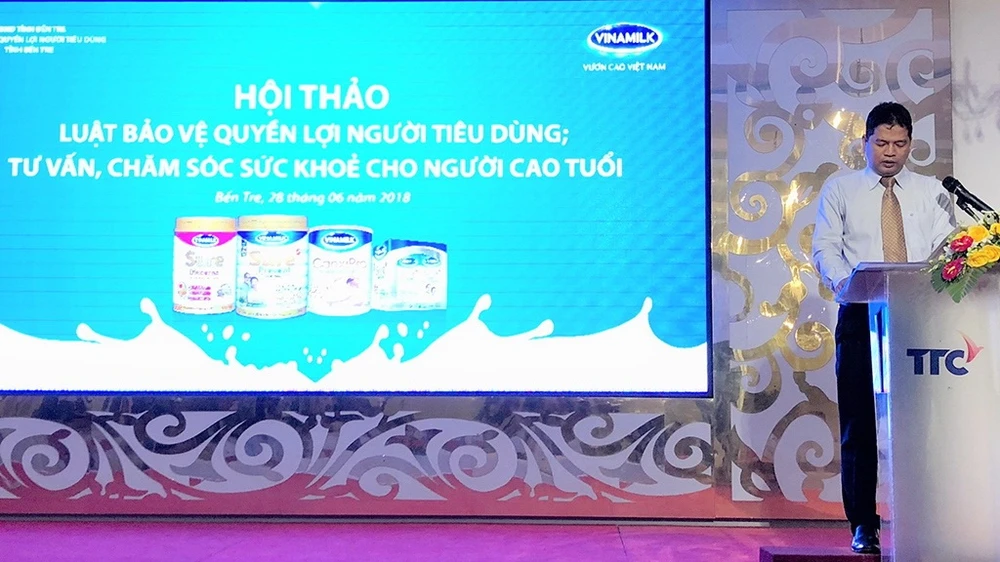 Đại diện Vinamilk ông Trần Hữu Định - Giám đốc kinh doanh miền Tây phát biểu tại hội thảo.