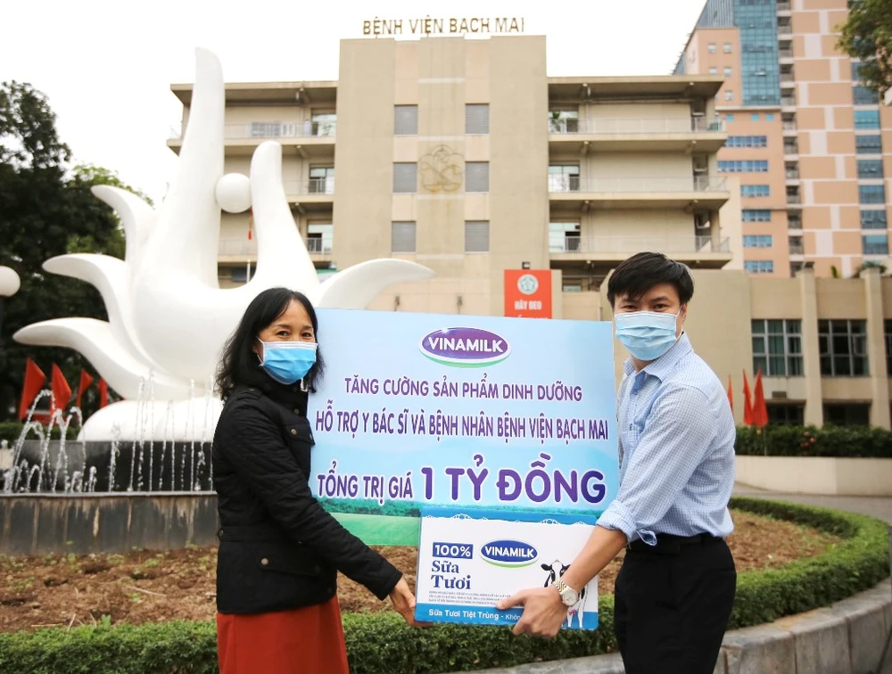 Với mong muốn tăng cường thêm dinh dưỡng để kịp thời tiếp sức cho đội ngũ y, bác sĩ cũng như các bệnh nhân đang điều trị tại bệnh viện, Vinamilk đã ủng hộ các sản phẩm dinh dưỡng, như: sữa tươi 100%, sữa chua uống bổ sung men sống Probi, nước cam ép, các loại sữa đậu nành, sữa hạt… với tổng giá trị 1 tỉ đồng.