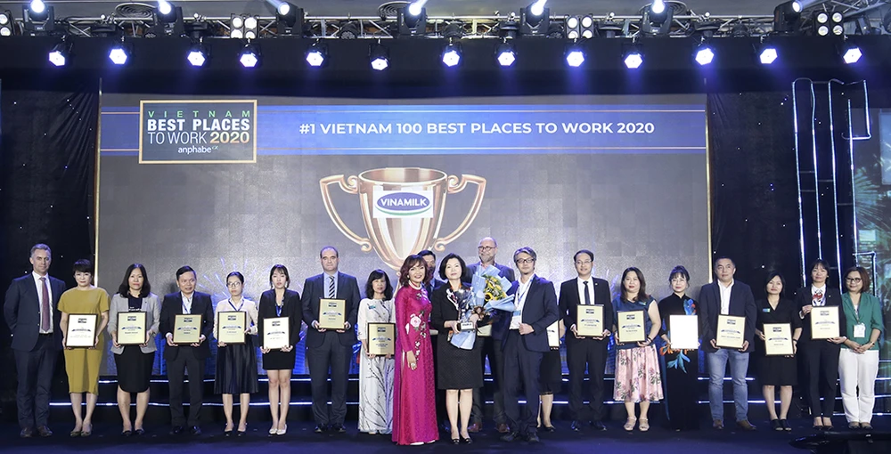 Theo “Danh sách 100 nơi làm việc tốt nhất Việt Nam 2020” vừa được công bố bởi Tổ chức cộng đồng mạng nghề nghiệp Anphabe và Công ty Nghiên cứu Thị trường Intage, Vinamilk năm thứ 3 liên tiếp giữ vững vị trí dẫn đầu là “Nơi làm việc tốt nhất Việt Nam”.