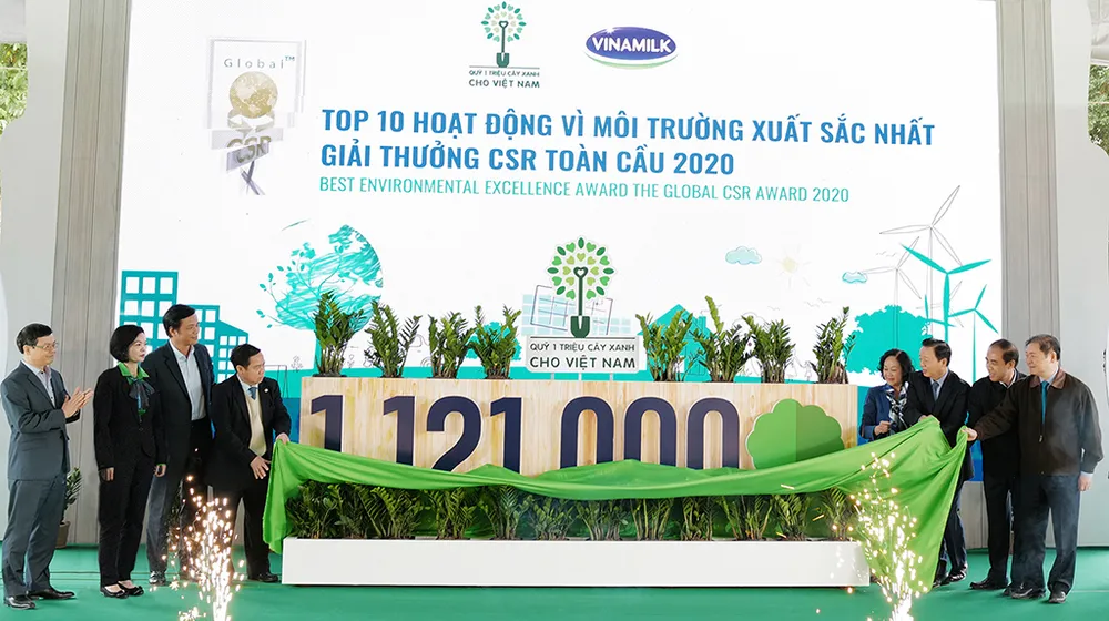| Với những đóng góp thiết thực cho cộng đồng và môi trường, Vinamilk và Quỹ một triệu cây xanh cho Việt Nam đã được trao tặng giải thưởng cho Hoạt động Vì Môi trường Xuất sắc nhất trong khuôn khổ của Giải thưởng CSR toàn cầu 2020 (The Global CSR Award) và nhận được bằng khen từ Bộ TN&MT. |