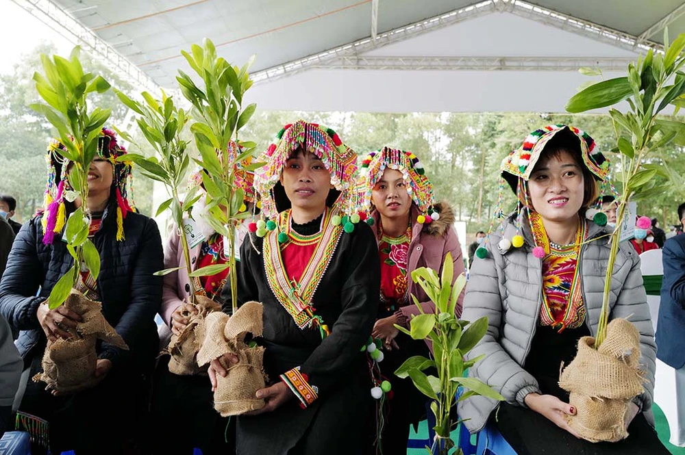Các hộ dân đại diện cho người dân tỉnh Tuyên Quang nhận các cây giống từ chương trình