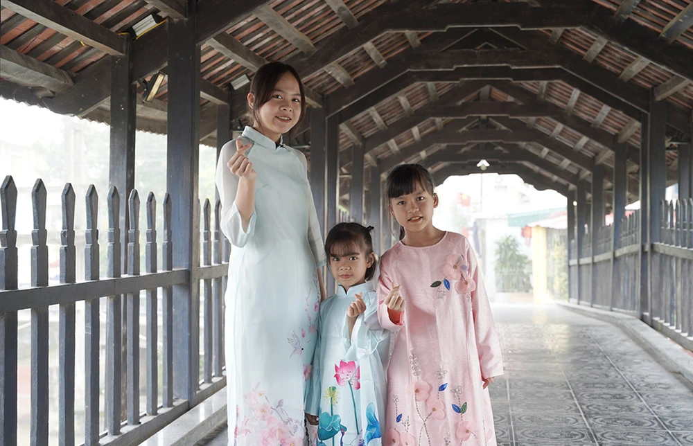 Ba chị em Trang, Giang và Ly duyên dáng trong tà áo dài do Vinamilk trao tặng
