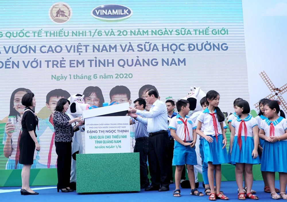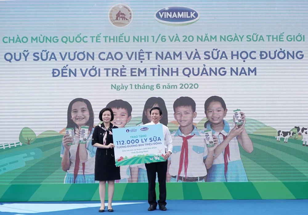Hưởng ứng chủ đề này, Vinamilk và Quỹ sữa Vươn cao Việt Nam đã mang niềm vui được uống sữa cho trẻ em có hoàn cảnh đặc biệt đang được nuôi dạy tại các trung tâm bảo trợ xã hội, nhà mở… của tỉnh Quảng Nam bằng việc trao tặng hơn 112.000 ly sữa trị giá hơn 800 triệu đồng.