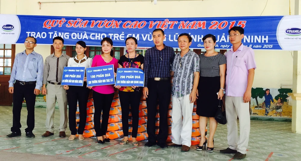 Công ty CP Sữa Việt Nam (Vinamilk) đã tổ chức thăm, tặng sữa cho trẻ em một số trường học bị ảnh hưởng, thiệt hại do mưa lũ tại tỉnh Quảng Ninh. Đại diện công ty đã trực tiếp đến TP Quảng Phả trao tặng 500 thùng sữa Ca cao lúa mạch Super Susu cho ba trường mầm non. Đó là trường mầm non Quang Hanh, trường mầm non Thác Cát, trường mầm non Mông Dương. Tổng giá trị phần quà trao cho các em gần 160 triệu đồng do cán bộ công nhân viên đóng góp cộng với một phần trích từ Quỹ Phúc lợi của công ty. Sản phẩm tặng cho trẻ em Quảng Ninh lần này là sản phẩm mới của Vinamilk, giàu dưỡng chất từ sữa và lúa mạch; bổ sung chất xơ , Vitamin B, Choline cung cấp năng lượng cho trí não, tốt cho tiêu hoá…