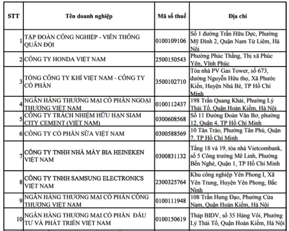 Tốp 10 doanh nghiệp nộp thuế thu nhập nhiều nhất năm 2017 theo công bố của Tổng cục Thuế.