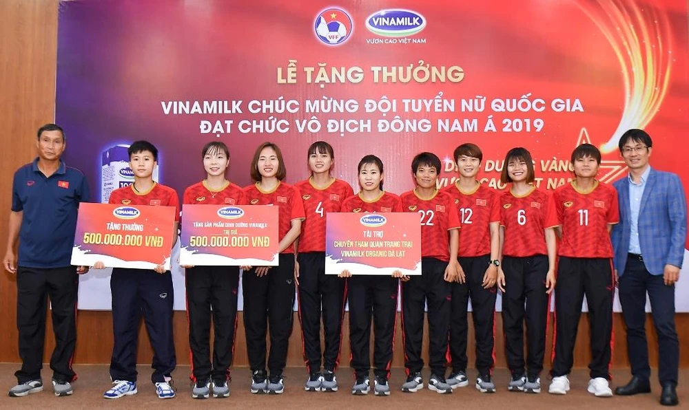 Tại buổi lễ chúc mừng đội tuyển nữ quốc gia Việt Nam vừa đoạt chức vô địch Đông Nam Á 2019, với vai trò là nhà tài trợ chính, Công ty CP Sữa Việt Nam (Vinamilk) đã tặng thưởng cho đội tuyển 500 triệu đồng (tiền mặt) và 500 triệu đồng quà tặng là các sản phẩm dinh dưỡng Vinamilk dành riêng cho đội tuyển nữ.
