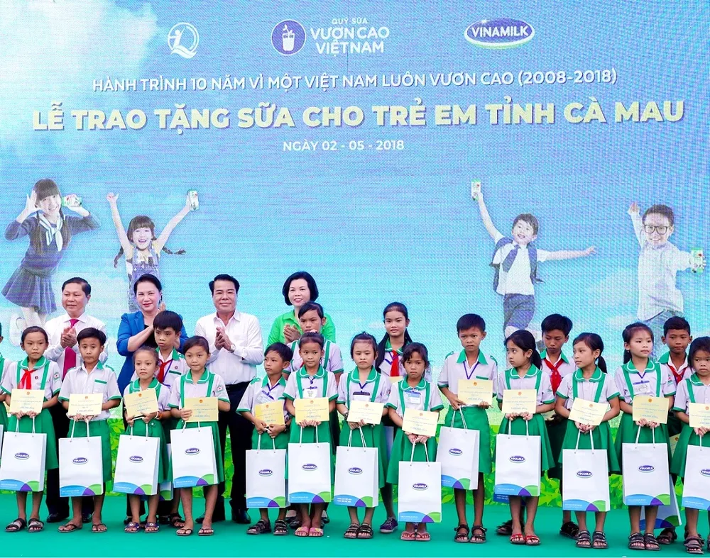Nhân dịp này, Quỹ sữa Vươn cao Việt Nam của Vinamilk đã trao tặng sữa cho tỉnh Cà Mau với số lượng 66.000 ly sữa bổ dưỡng, tương đương 450 triệu đồng cho hơn 700 em học sinh của tỉnh. Đặc biệt, các đồng chí lãnh đạo Đảng và Nhà nước đã cùng Quỹ bảo trợ trẻ em Việt Nam trao tặng 100 suất học bổng (một triệu đồng/suất) cho 100 trẻ em, là con của các gia đình có hoàn cảnh khó khăn của Cà Mau.