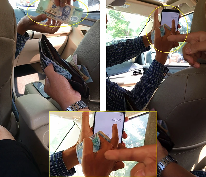 Tài xế taxi dỏm tráo tờ 500.000 đồng của du khách thành tờ 20.000 đồng còn vu vạ “You Alibaba”. Ảnh: NGUYỄN TÂN (Ảnh cắt từ clip)
