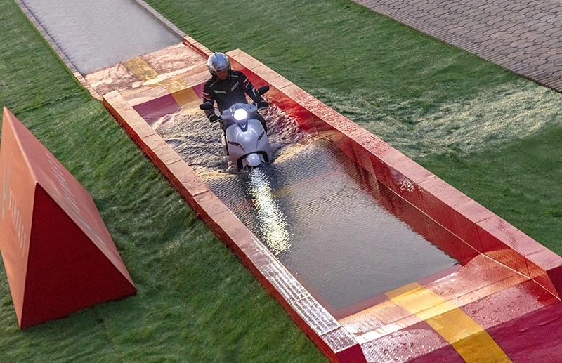 Xe máy điện Klara thể hiện khả năng lội nước trong ngày ra mắt.