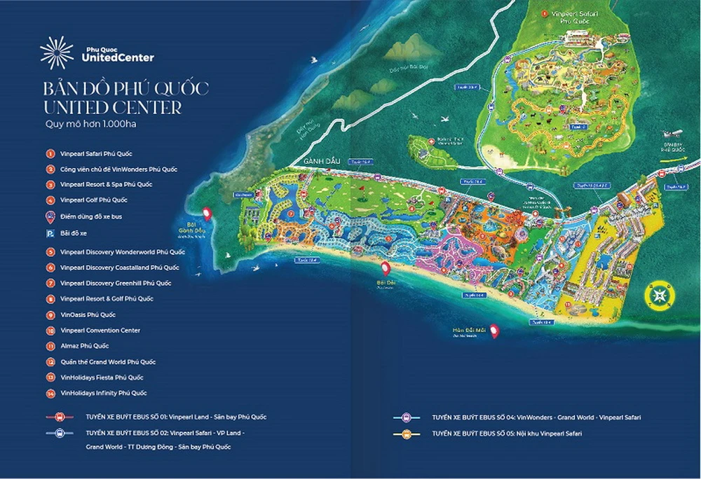 Phú Quốc United Center có tổng vốn đầu tư hơn 66.000 tỉ đồng, được phát triển theo mô hình “một điểm đến mọi nhu cầu”, gồm hệ thống các thương hiệu khách sạn từ Mini Hotel đến các thương hiệu 5 sao như Vinpearl, VinOasis, VinHoliday, Radison Blue… với hơn 10.000 phòng; Công viên chủ đề lớn nhất Việt Nam VinWonders Phú Quốc; một trong những Công viên bảo tồn động vật bán hoang dã lớn nhất châu Á Vinpearl Safari; Sân gôn 18 hố Vinpearl Golf; Corona Casino 5 sao, thành phố mua sắm giải trí không ngủ Grand World; Bệnh viện Vinmec... Với hệ sinh thái gồm hàng nghìn tiện ích và hạng mục giải trí kỷ lục - Phú Quốc United Center không chỉ đáp ứng toàn diện nhu cầu hưởng thụ - vui chơi – nghỉ ngơi – khám phá cho mọi du khách mà còn mang đến những trải nghiệm chưa từng có tại Việt Nam.