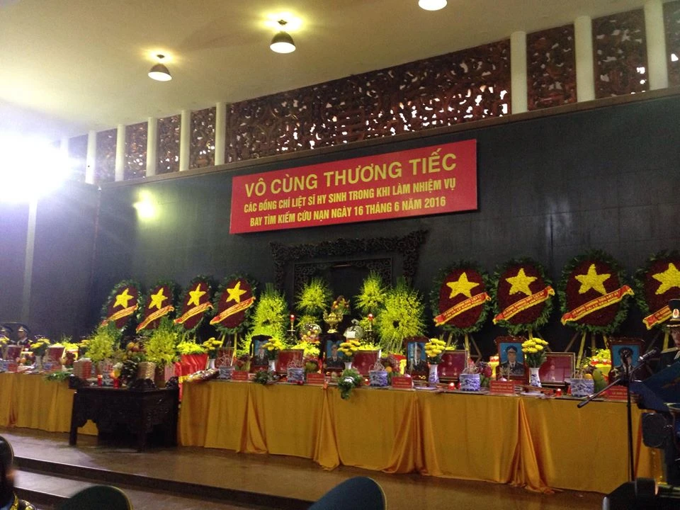 Sáng nay (30-6), Quân ủy Trung ương, Bộ Quốc phòng, Quân chủng Phòng không Không quân đã tổ chức lễ viếng chín phi công và thành viên tổ bay CASA 212 tại Nhà tang lễ Bộ Quốc phòng, số 5 Trần Thánh Tông, TP Hà Nội.