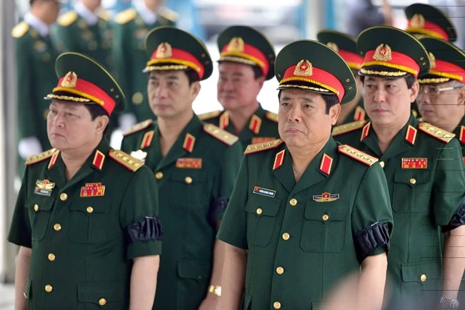 Đoàn Quân ủy trung ương dẫn đầu là Tổng bí thư Nguyễn Phú Trọng cùng Bộ trưởng Quốc phòng đại tướng Ngô Xuân Lịch vào viếng.