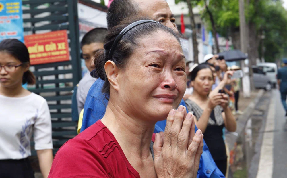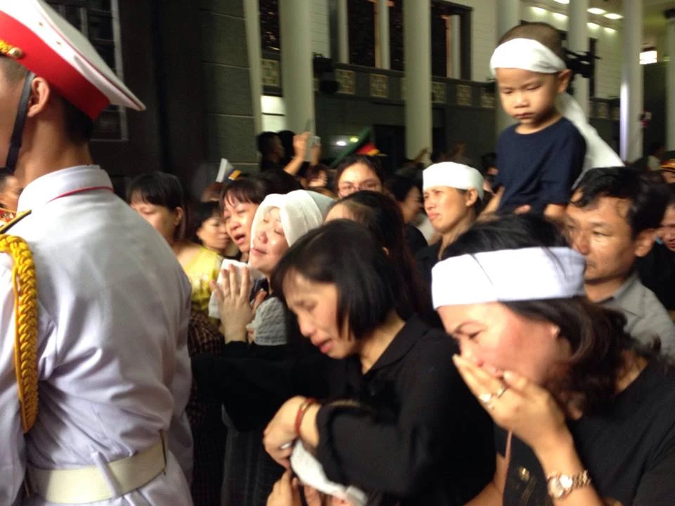 Phía bên ngoài những dòng người đến viếng dài như vô tận. Nhiều người đã không cầm được nước mắt tiếc thương...