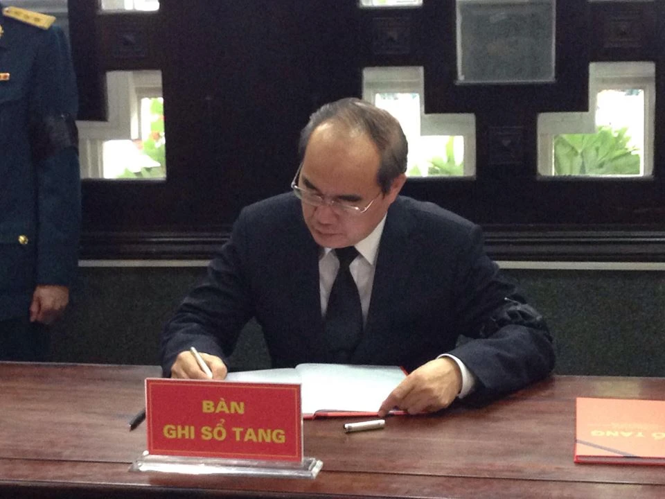 Chủ tịch UBMTTQVN Nguyễn Thiện Nhân đang ghi sổ tang