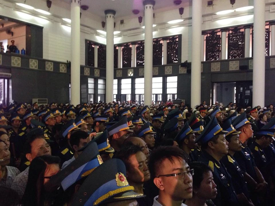 Trưởng ban lễ tang đọc đến từng cái tên, từng cấp bậc... thì những người dự lễ truy điệu lặng người đi đến đấy. Mọi người lặng lẽ lau giọt nước mắt chảy không ngừng trên gò má.
