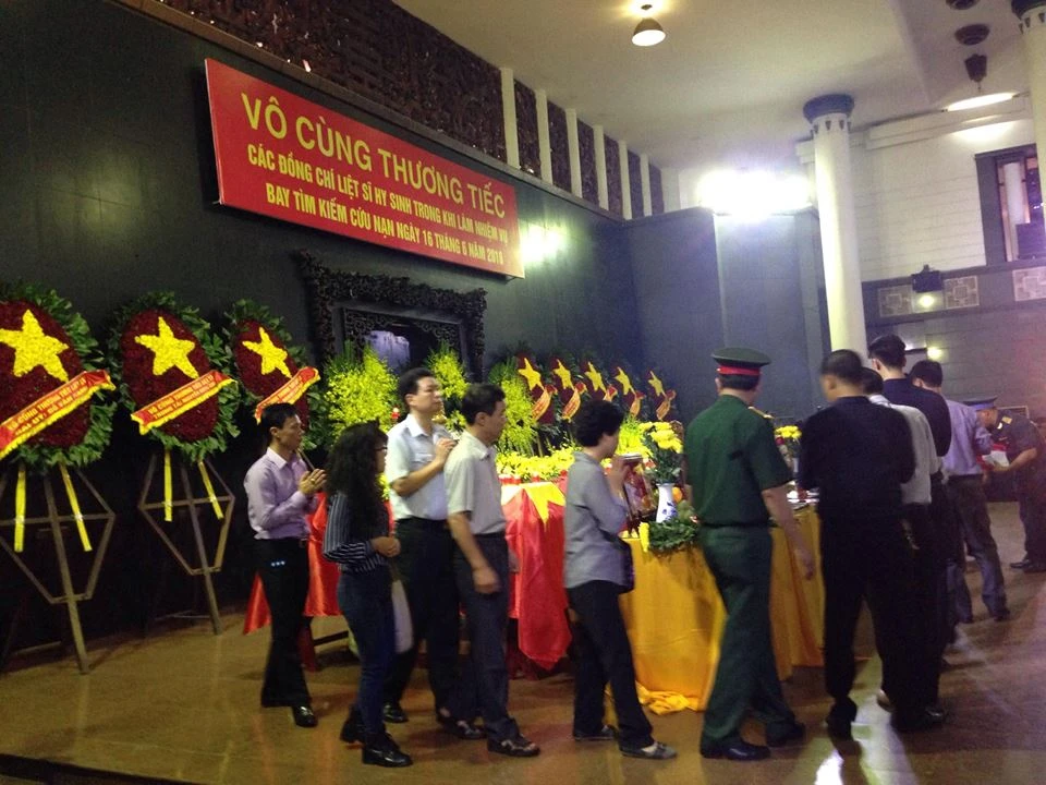 Chủ tịch QH Nguyễn Thị Kim Ngân viết trong sổ tang: "Vô cùng thương tiếc các liệt sĩ đã hy sinh trong khi làm nhiệm vụ bay tìm kiếm cứu nạn. Mong gia đình các đồng chí vượt qua nỗi đau mất mát to lớn này. Nghiêng mình trước linh cữu các anh để tiễn đưa các anh về nơi an nghỉ vĩnh hằng".