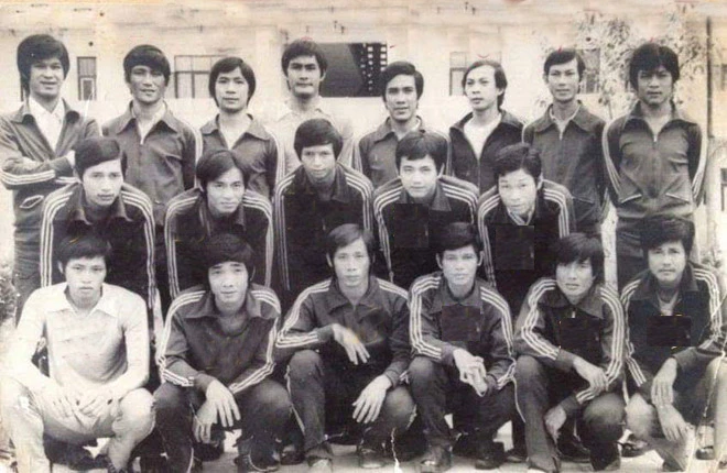 Đội Công Nghiệp Thực Phẩm những năm 1980, cặp trung phong Trung Hậu - Hoàng "Lato" (thứ năm, sáu hàng cuối từ trái sang). Ảnh: TƯ LIỆU