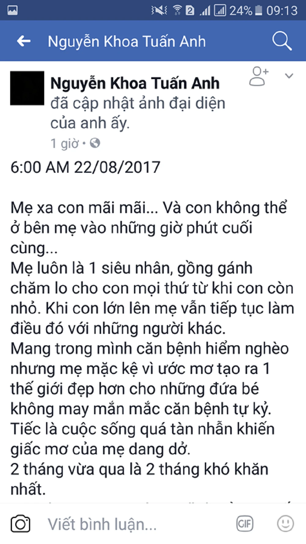 Lời tạm biệt mẹ của con trai bác sĩ Kiều Thanh Hà.