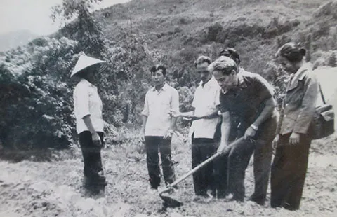 Ông Mười trong một lần đi thực địa thăm nông dân. Ảnh tư liệu