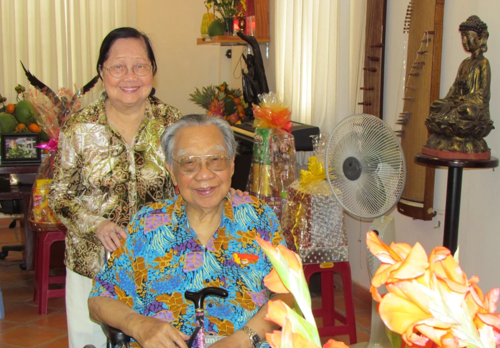 Giáo sư Trần Văn Khê và nhà thơ Tôn Nữ Hỷ Khương tại tư gia giáo sư Trần Văn Khê. Ảnh: Tư liệu gia đình