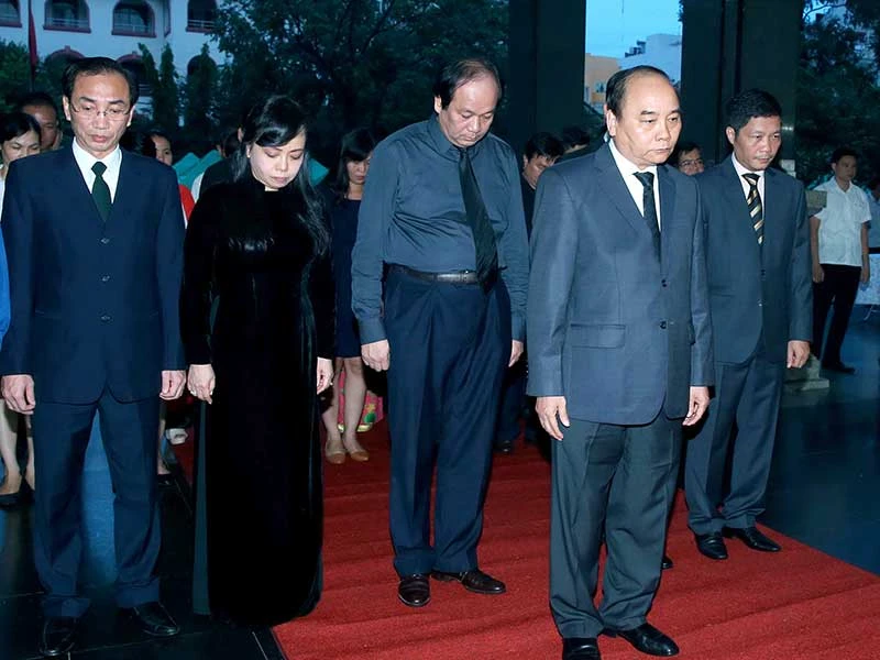 Thủ tướng Nguyễn Xuân Phúc dẫn đầu đoàn đại biểu Chính phủ đến viếng chiều 30-10. Ảnh: TTXVN