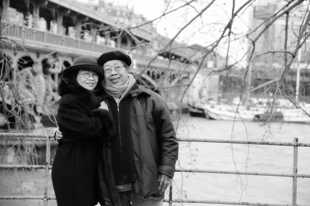 Vợ chồng ca sĩ Bạch yến và GS.TS Trần Quang Hải tại Pháp. Ảnh: Nicolas Phạm