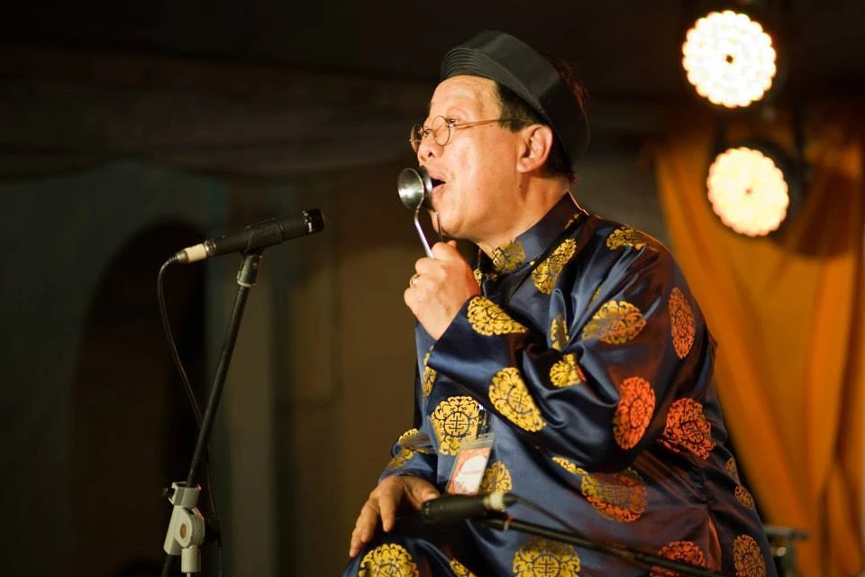 GS.TS Trần Quang Hải được mệnh danh là 'vua muỗng'. Trong ảnh: GS.TS Trần Quang Hải biểu diễn gõ muỗng tại Festival George Town, Penang (Malaysia) vào tháng 6-2013. Ảnh: Tư liệu