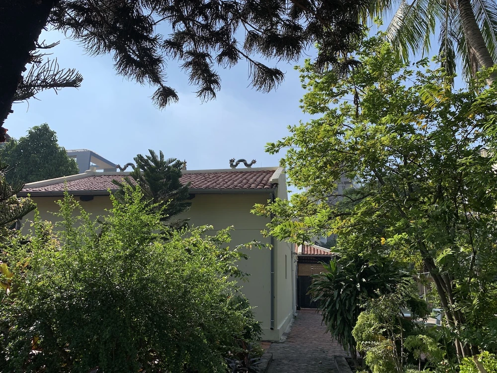 Khu vực sân vườn với diện tích đất 2.222,8m2 với các loại cây, hoa, trái đặc trưng Nam bộ. Ảnh: Q.T