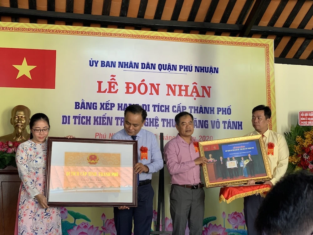 Sáng 5-6, UBND quận Phú Nhuận đã tổ chức lễ đón nhận bằng xếp hạng di tích cấp TP đối với di tích kiến trúc nghệ thuật lăng Võ Tánh (19 Hồ Văn Huê, phường 9, quận Phú Nhuận).