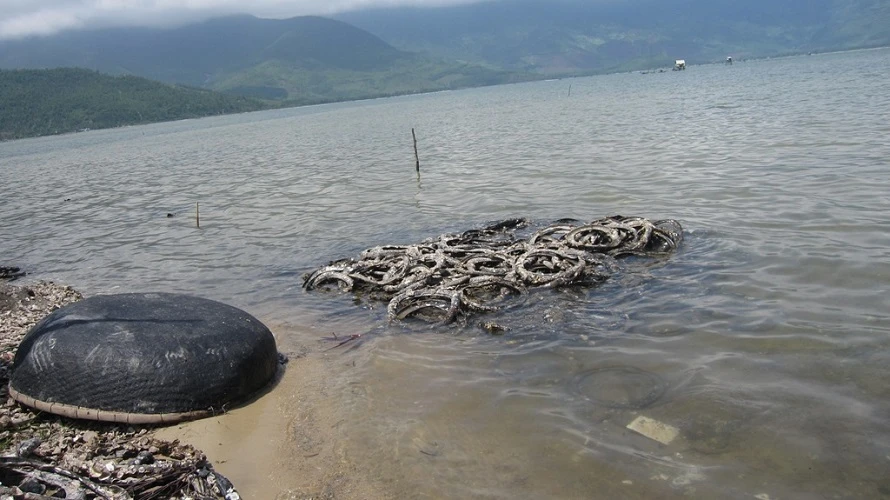 Bên cạnh đó, nhiều hộ nuôi hàu đã dùng hàng triệu lốp xe máy, xe đạp, ô tô vứt xuống vịnh để nuôi hàu làm cho môi trường ở vịnh ngày càng ô nhiễm trầm trọng. Đặc biệt, khi những lốp xe không còn sử dụng để nuôi hàu nữa nhiều hộ đã vứt ra giữa vịnh.