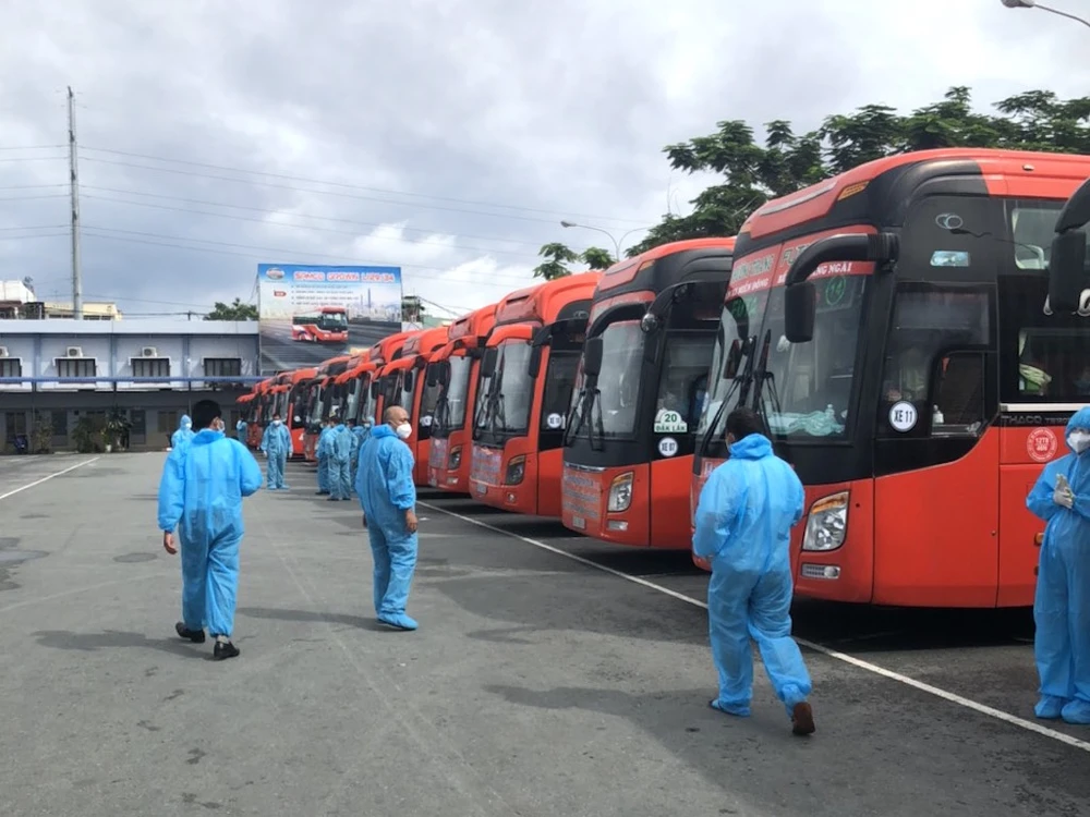 Ngay từ sớm các công dân đã được hỗ trợ đến Bến xe Miền Tây (TP.HCM) để lên xe về quê tránh dịch.