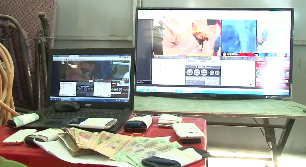 Theo công an, qua công tác trinh sát, công an tỉnh phát hiện tại quán cà phê (thuộc xã Mỹ Lộc, huyện Tam Bình) do Nhựt và Quang làm chủ là địa điểm tổ chức đá gà ăn thua bằng tiền qua mạng Internet nhiều tháng nay. Khoảng 13 giờ 30 ngày 28-4, Phòng cảnh sát hình sự, Công an tỉnh phối hợp với Công an huyện Tam Bình đã ập vào bắt quả tang các đối tượng trên đang tham gia cá cược đá gà ăn thua bằng tiền, bằng hình thức truy cập trực tuyến các trận đá gà trên Internet.