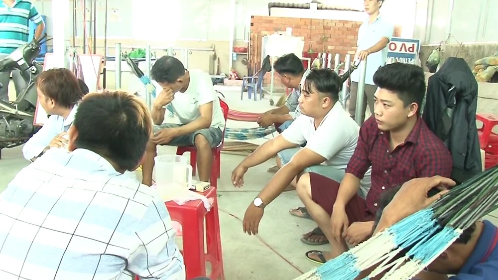 Các đối tượng đang cá cược đá gà trên mạng thì bị bắt quả tang