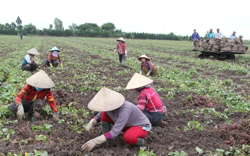 Vĩnh Long đang cần hỗ trợ tiêu thụ 27.000 tấn khoai lang tím. Ảnh: BCT