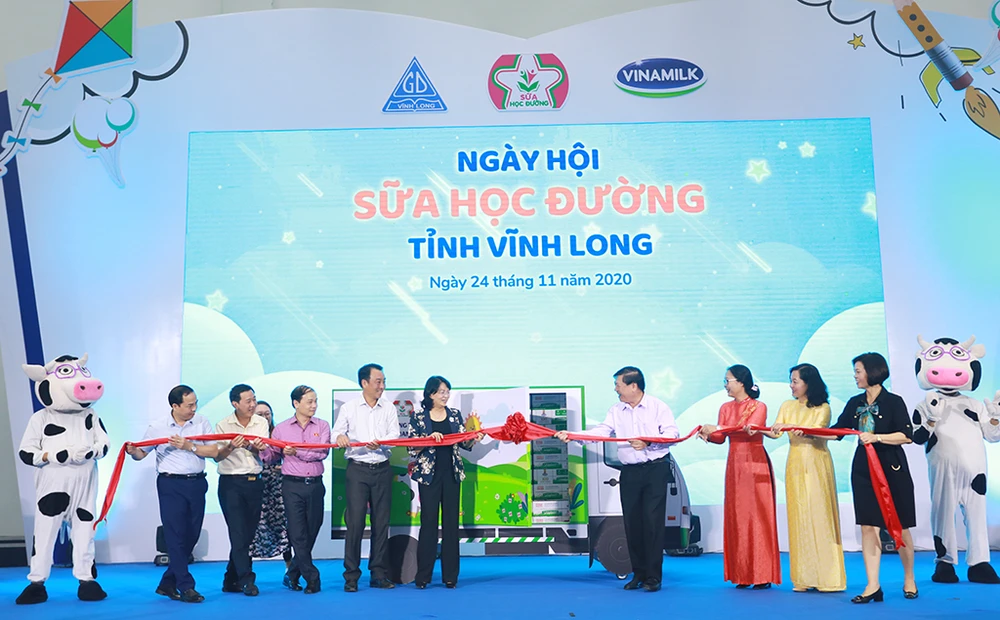Ngày hội sữa học đường tỉnh Vĩnh Long có sự tham dự của bà Đặng Thị Ngọc Thịnh - Ủy viên BCH Trung ương Đảng, Phó Chủ tịch nước Cộng hòa XHCN Việt Nam, Chủ tịch Hội đồng bảo trợ - Quỹ Bảo trợ Trẻ em Việt Nam; lãnh đạo các Bộ, Ngành; lãnh đạo Tỉnh ủy, UBND tỉnh Vĩnh Long, Sở, Ban, Ngành tỉnh Vĩnh Long và đại diện Vinamilk.