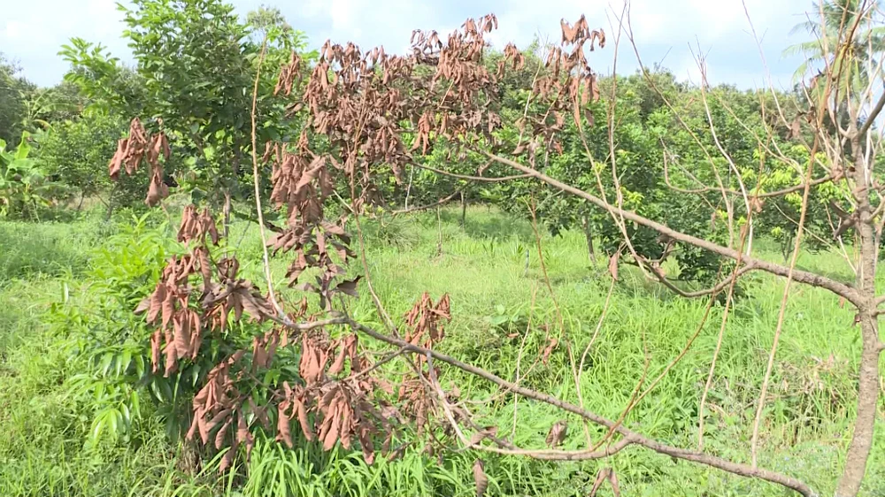 Ngày 15-11, có mặt tại vườn chôm chôm của ông ông Nguyễn Võ Duy Phương (59 tuổi, ngụ ấp Phú An 1, xã Bình Hòa Phước, huyện Long Hồ), mùi dầu hỏa vẫn còn nồng nặc trong vườn. Hơn 10 gốc chôm chôm (ba năm tuổi) đã chết khô, 14 cây khác cũng đang có dấu hiệu vàng lá, chết dần.